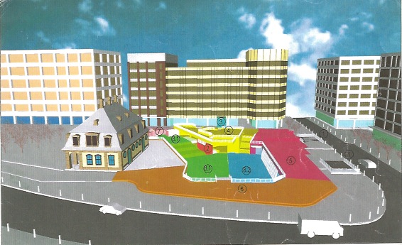 Systemdarstellung (Stand 2005 mit Darstellung des Allianzgebäudes noch vor dessen Total-Umbau) des Umbaues der Platzanlage „An der Hauptwache“ in Frankfurt am Main mit den 8 Teilstufen des Umbaues.